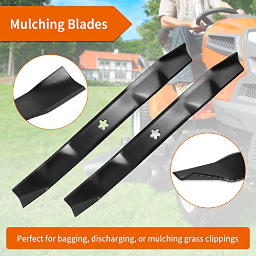 - 【Application】These mulching blades are shaped to keep the grass under deck for longer allowing it to be cut into smaller pieces, which provides natural mulch for your lawn since smaller clippings will decompose quicker, perfect for bagging, discharging, or mulching grass clippings.