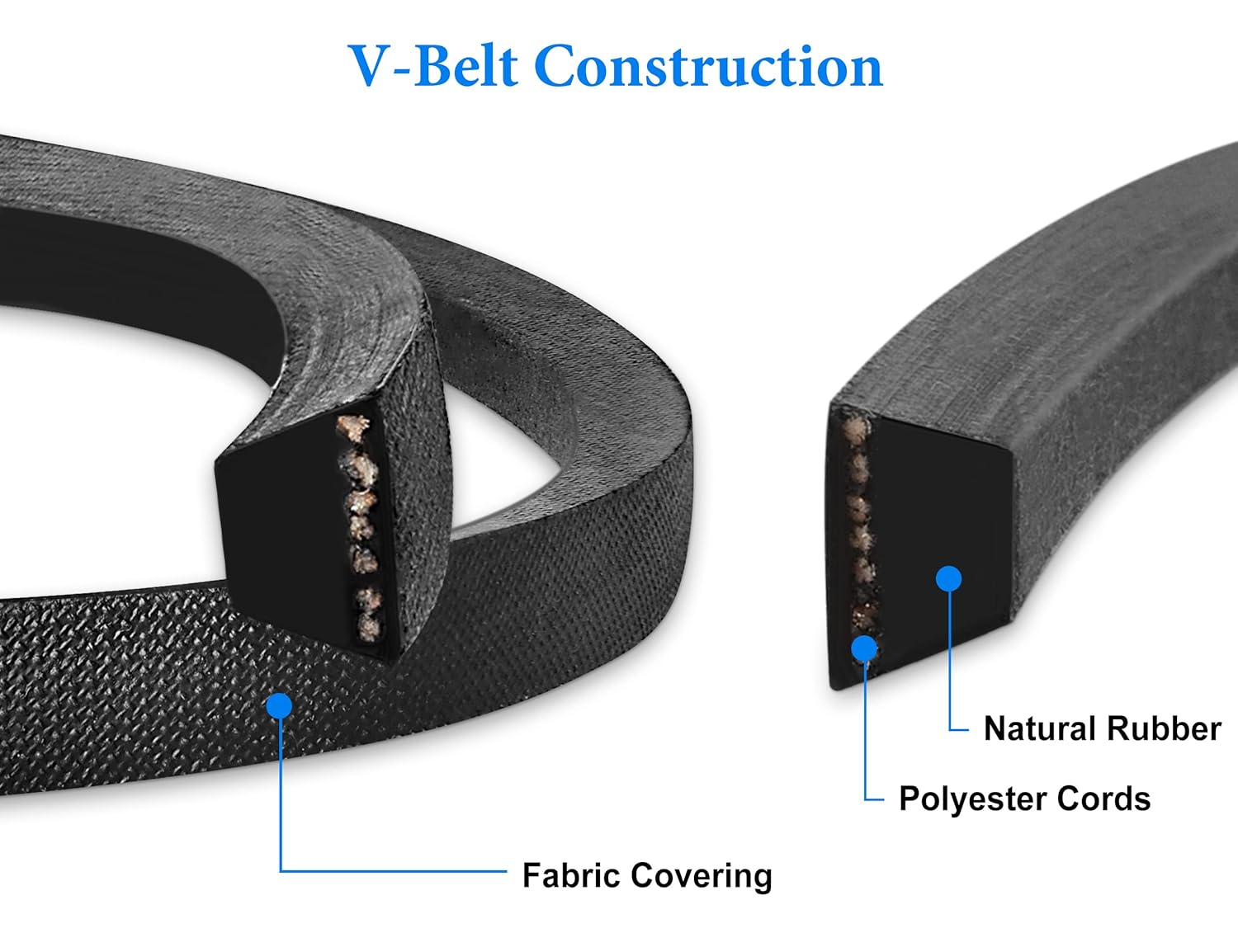 【High-quality Material】Rubber v belt with polyester cords and fabric covering provides tensile strength, heat, and shock resistance.