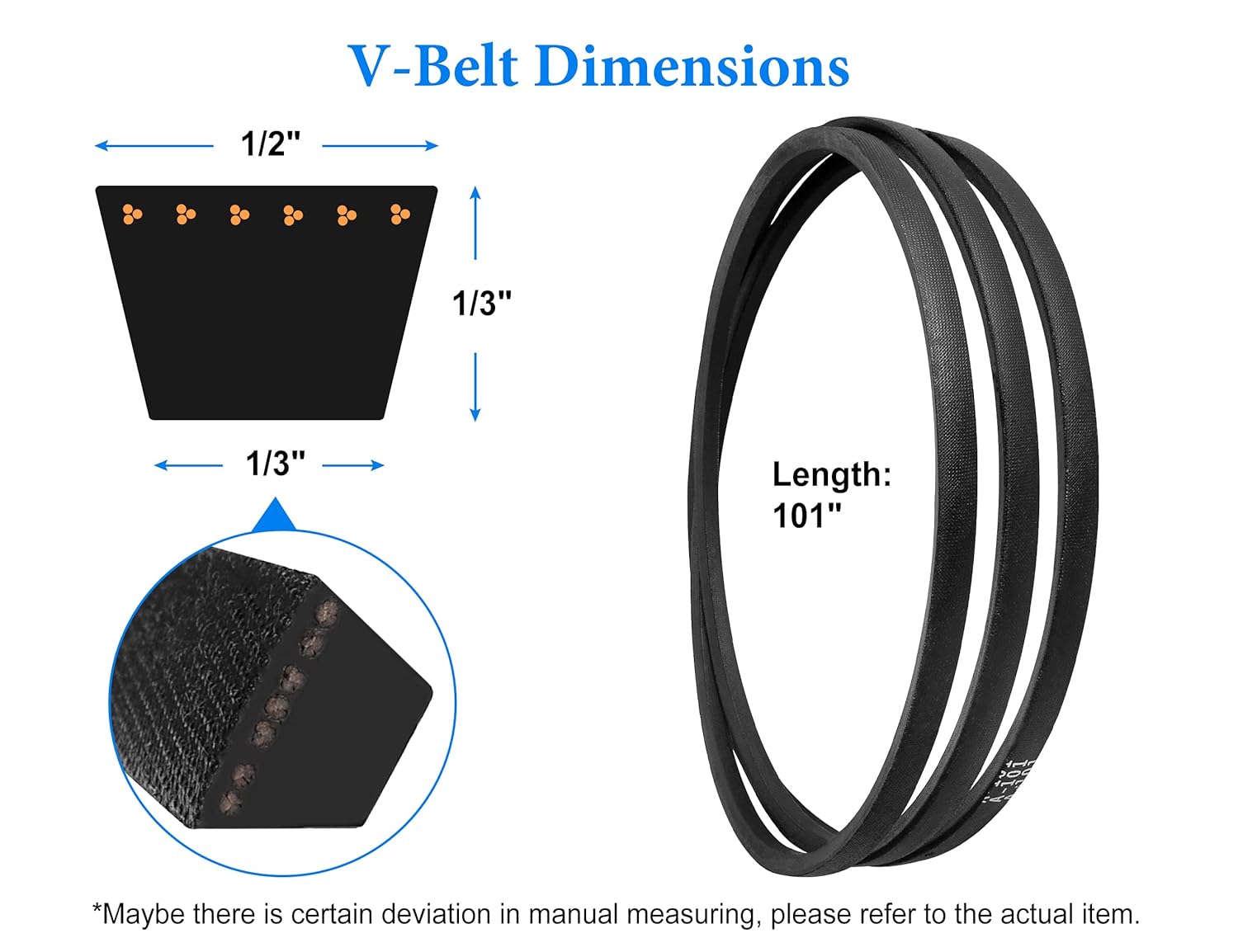 【Package Includes】1 mower deck belt with length 101", width 1/2", thickness 1/3".