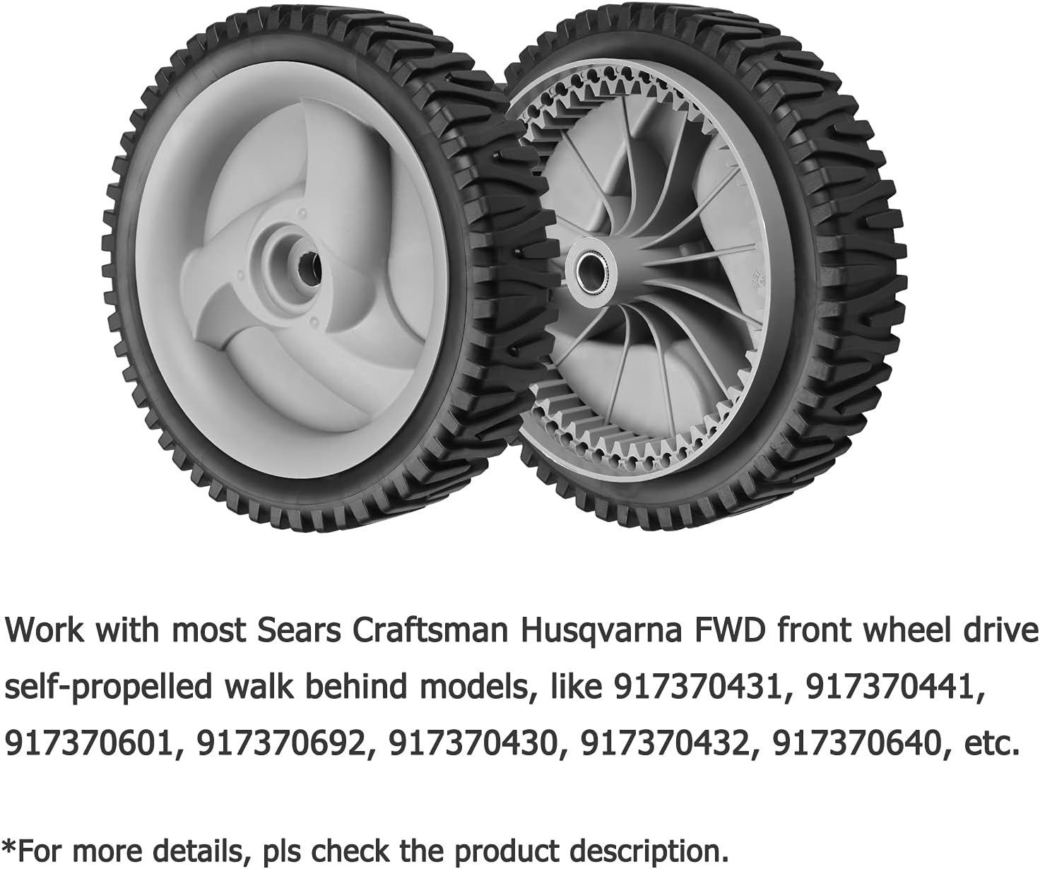 Fourtry Front Drive Wheels Fit for Craftsman Mower - Front Drive Tires Wheels Fit for Craftsman & HU Front Wheel Drive Self Propelled Lawn Mower Tractor, Replaces 583719501 194231X460, 2 Pack, Gray(Promotion Code: 20Y75WAQ)