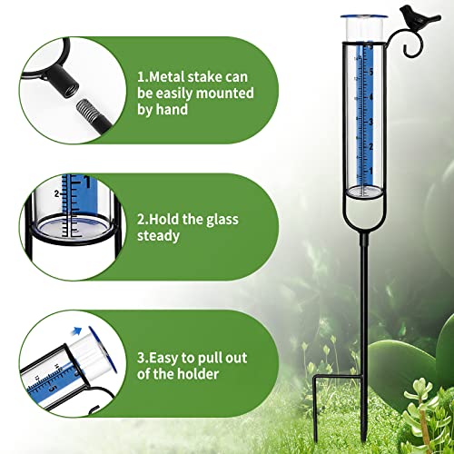 - 【Package Includes】Glass measuring cylinder x 1, metal stake x 1, tube cleaning brush x 1. The rain meter with a hummingbird figure design metal stand can be also used as a decoration for courtyard, lawn, garden, farm, potted plant.