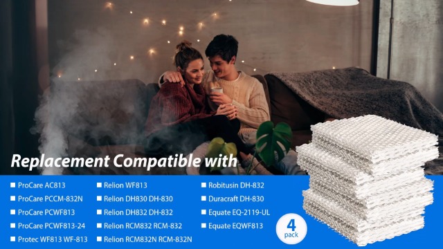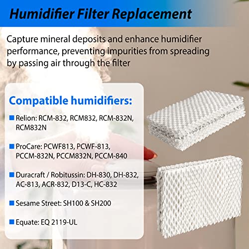 Jowlawn Humidifier Filter Replacement- 4 Pack WF813 Humidifier Wick Filter Compatible with Equate EQ 2119-UL, Relion RCM-832 RCM-832N, ProCare PCCM-832N Cool Mist Humidifier Filters