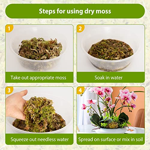 - 【Package Included】You will receive 300g (Approx. 10oz) natural long fiber sphagnum moss. The original package is compact, but the dried moss can expand fantastically and gives you an amazing amount of volume once you add water. Squeeze out excessive moisture before using. The following description has the teaching steps for changing dry moss in orchids.
