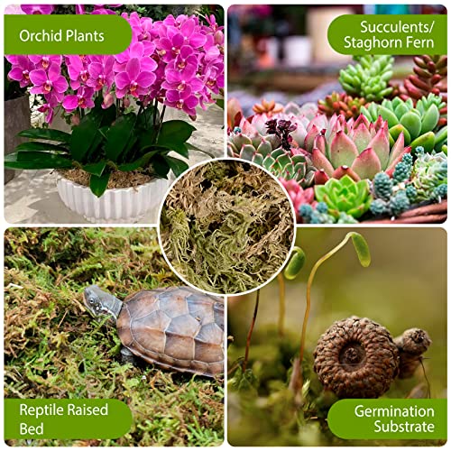- 【Water Retention & Breathable】 Our premium sphagnum moss has strong water absorption capacity, and can absorb and store 20~25 times of its own weight of water. It is an ideal orchid potting mix/orchid moss for fragile orchids, or it can be placed in the basin to enhance permeability, also using for succulent soil/carnivorous plant soil.