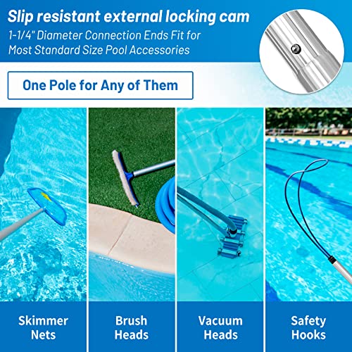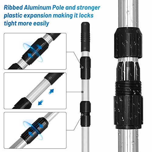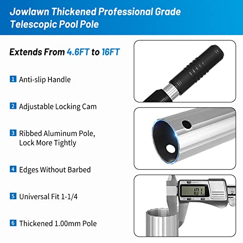 Jowlawn Swimming Pool Pole Telescopic 16ft - 3 Section Extendable Aluminium Pool Skimmer Pole from 4.6 to 16 Feet, Attach Connect Pool Net, Skimmer, Brush, Rake, Vacuum Head - Universal Fit 1-1/4