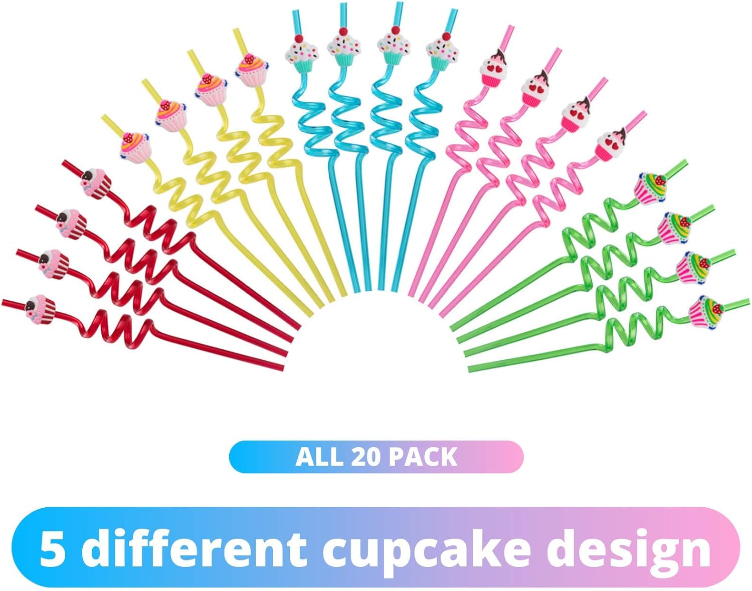 Reusable Cupcake Straws - 25 Pcs Cupcake Birthday Party Favors for Girls Birthday Party Decorations, Includes 20 Cupcake Straws and 5 Temporaty Tattoos, Plastic Drinking Straws (Promotion Code: 20YEDJKF)