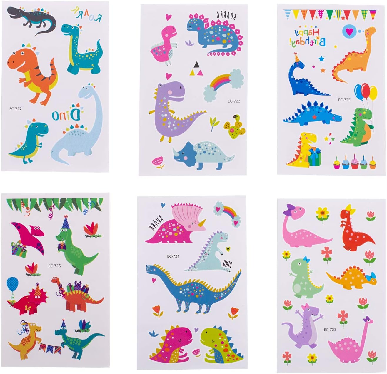 【Unique Designs】Reusable dinosaur drinking straws have 6 different color and variety designs , each design of 4 pcs.6 sheets dinosaur tattoos featuring unique design for Rex, Stegosaurus, Pterosaurs, Triceratops,Brontosaurus with super cute additional Dino Crossing and jungle volcanoes that let party shine.